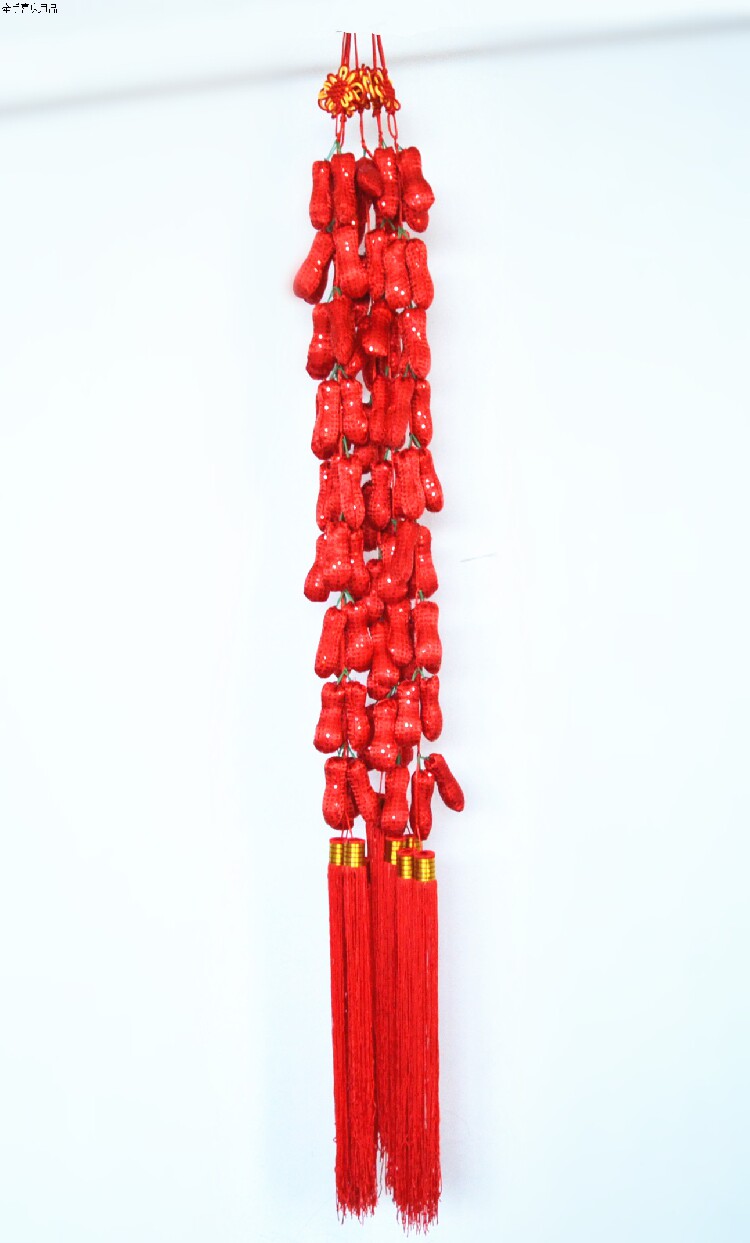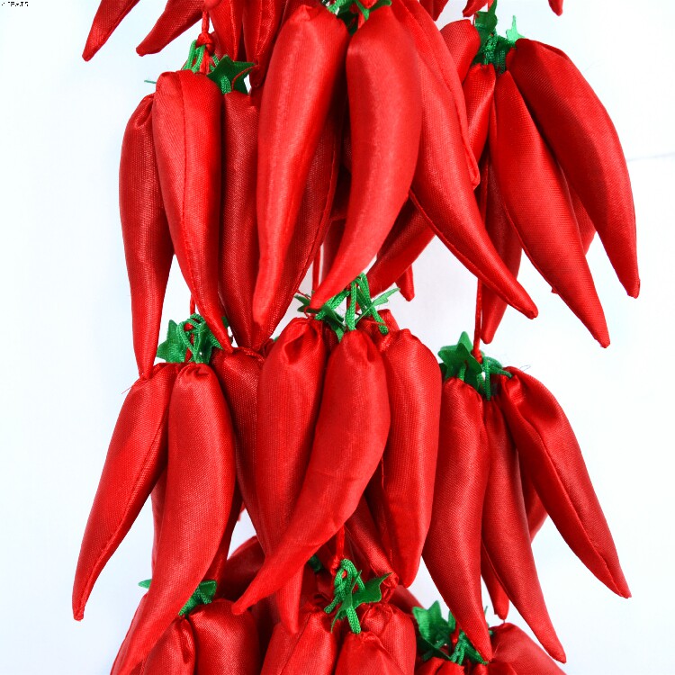 Chili a string of red peanuts a string of chili pair of red flowers and a pair of red flowers