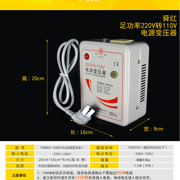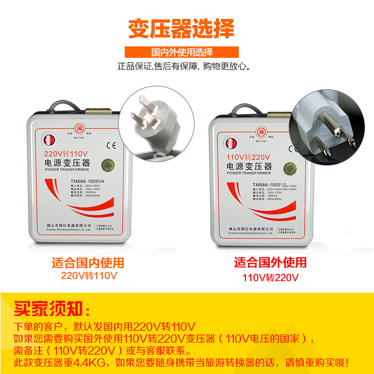 Shunhong pure copper foot power 1000W 220v to 110v transformer Japan United States Canada electrical conversion