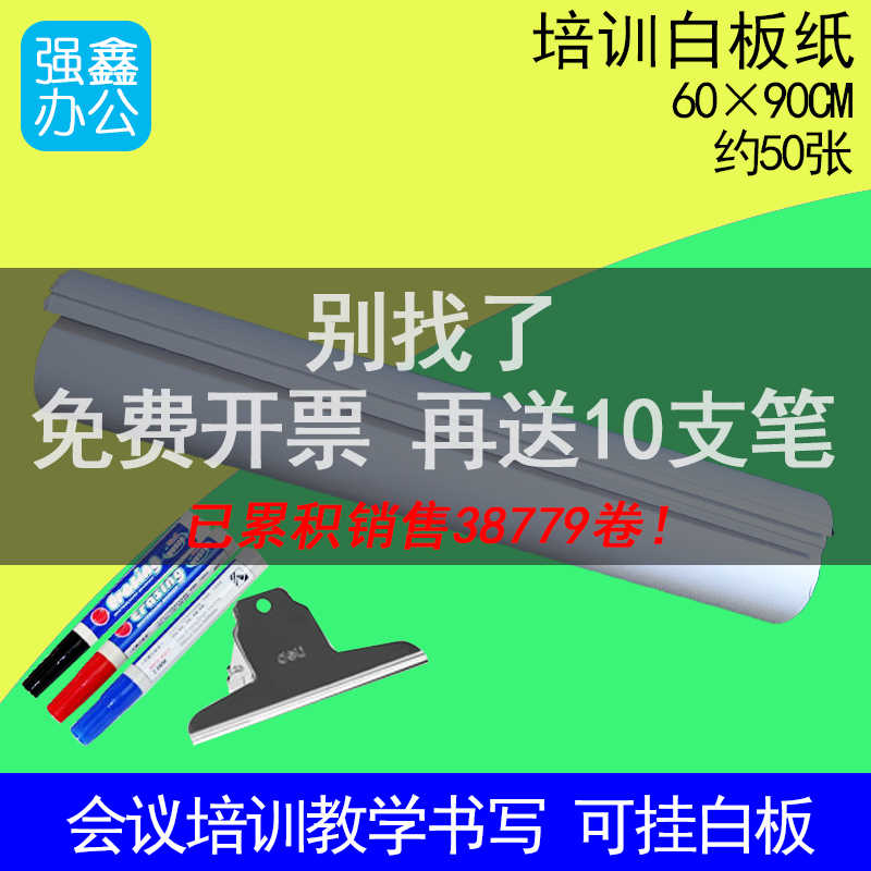 Qiangxin training whiteboard paper Whiteboard hanging paper training paper Conference paper hanging whiteboard paper disposable paper Large white paper training white paper tape hole hanging paper 60x90cm whiteboard rack whiteboard sticker