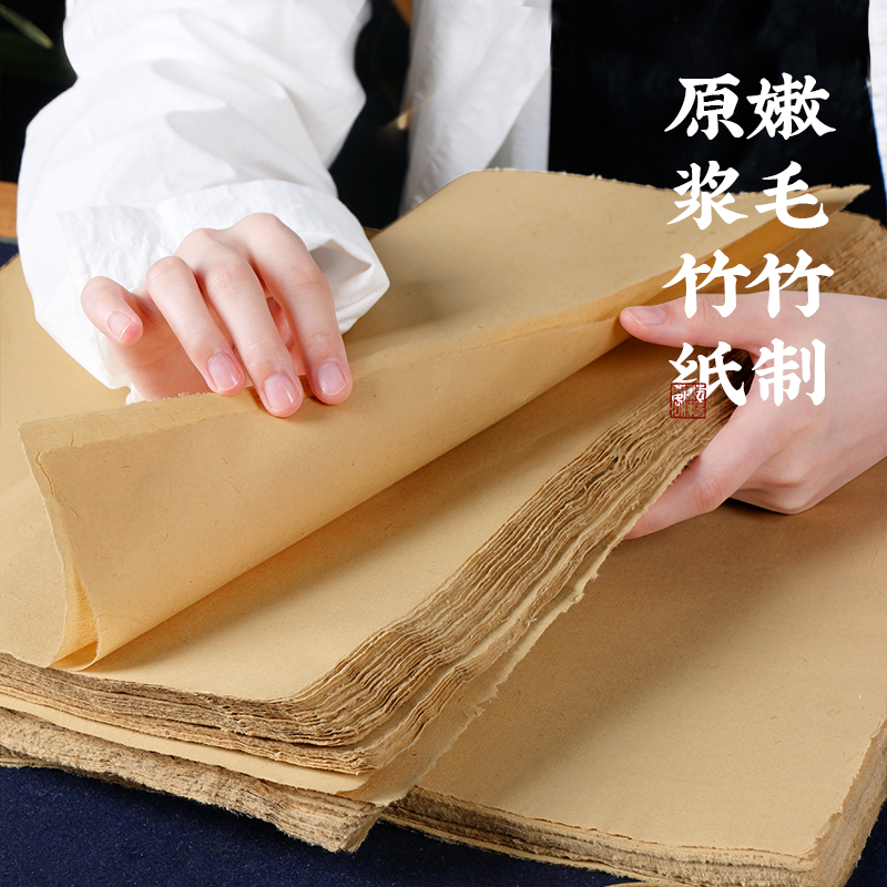 Fuyang handmade yuan book paper rough edge paper 70 sheets extra thick bamboo pulp book French painting brush writing practice paper copying