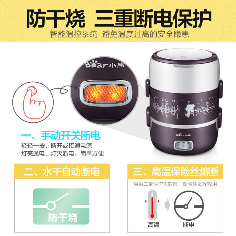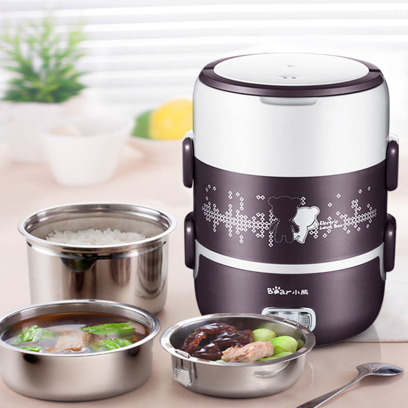 Small Bear electric lunch box three-layer vacuuming stainless steel liner can be electrically insulated and heated and heated to steam the rice cooker