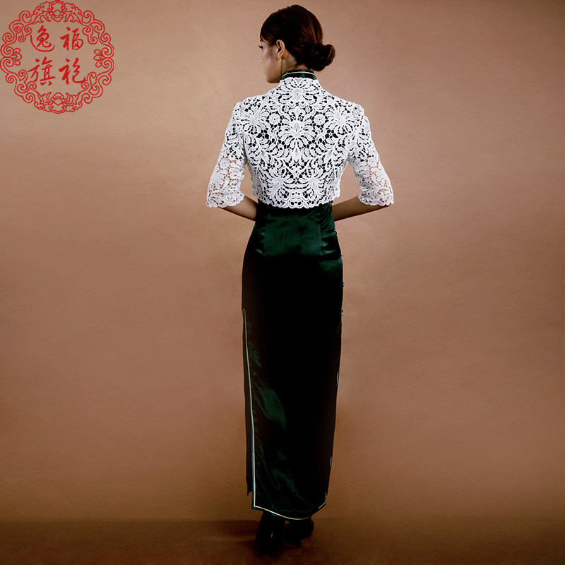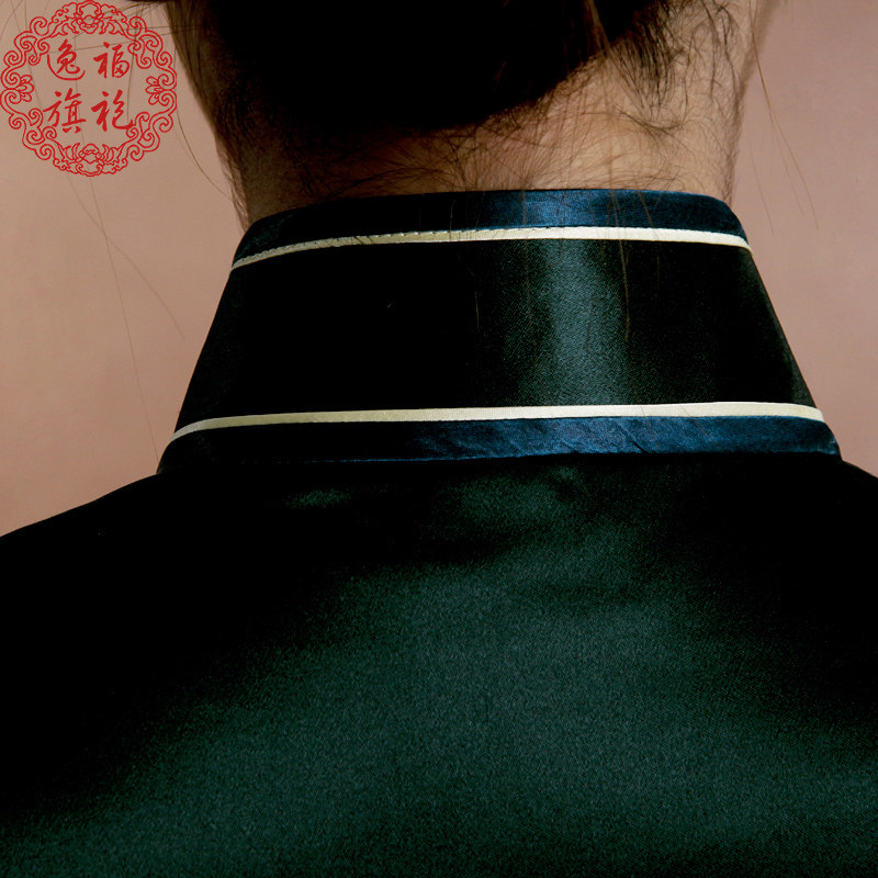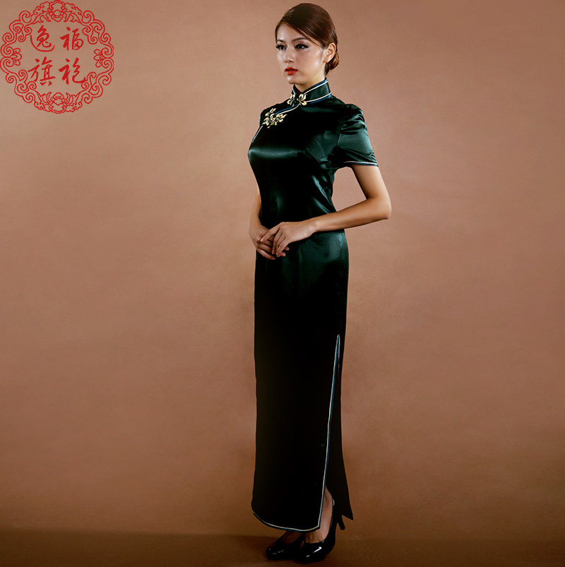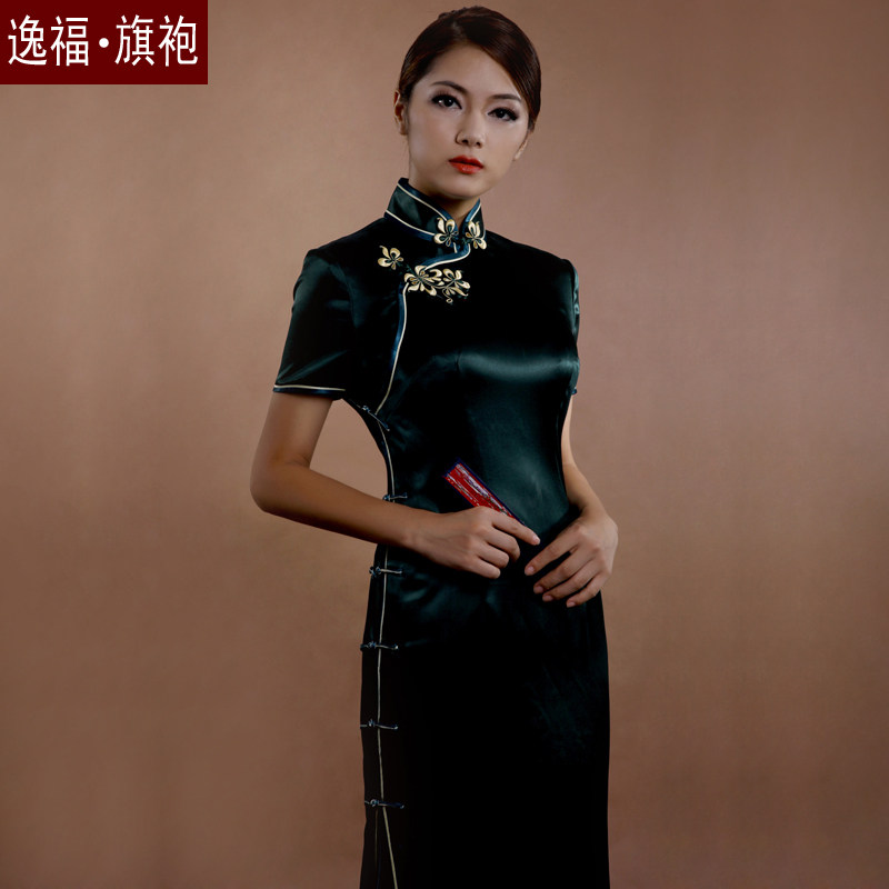 Yifu ancient heavy silk dress long version retro side open cheongsam skirt handmade flower buckle full placket customization