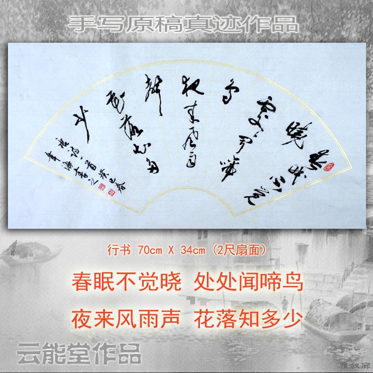 "Spring Sleeps don't feel like a bird" The book fan pasta calligraphy works hand-written original handwriting