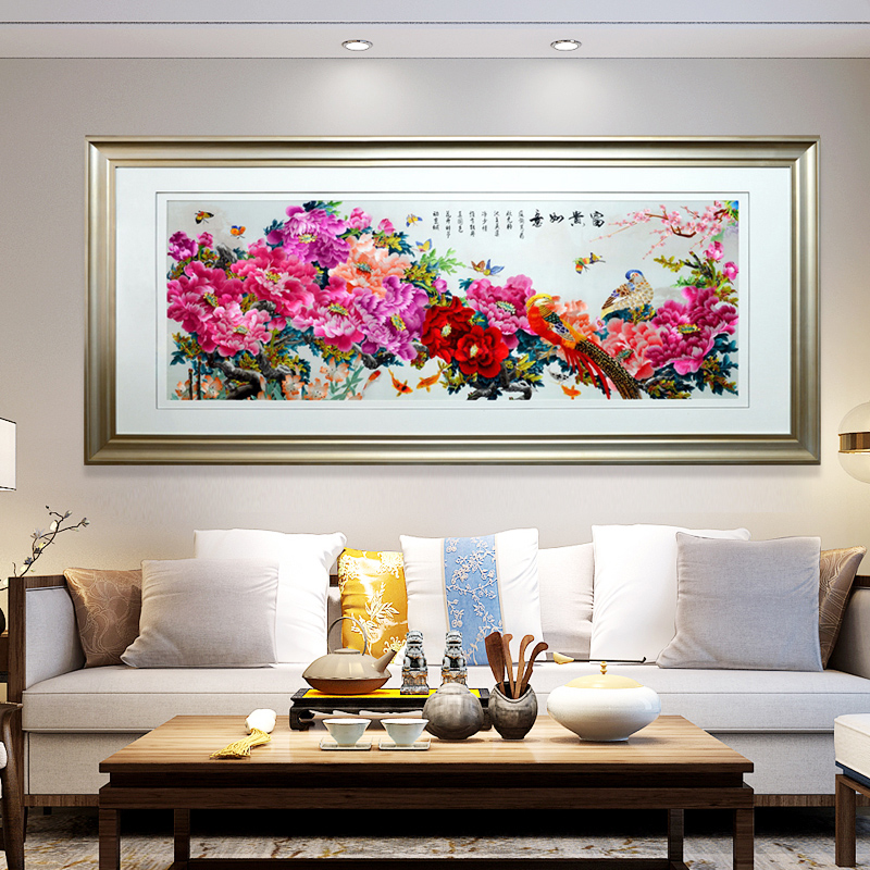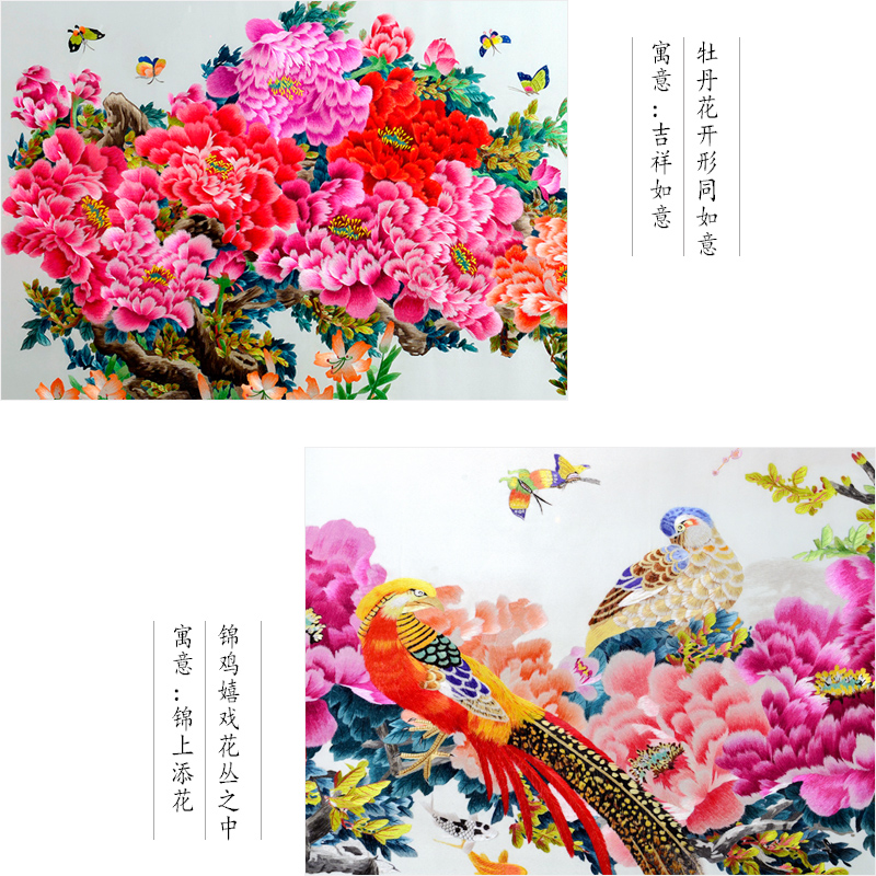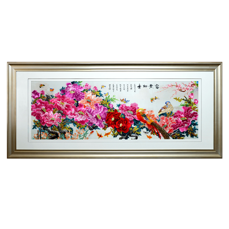 Ancient Wu female red Su embroidery finished hanging painting handmade Suzhou embroidery living room painting Chinese decorative painting Large peony rich