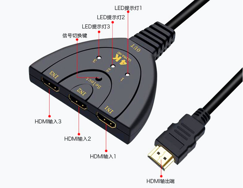 HDMI switcher three-in-out band audio computer TV screen film 4K HD 3 in 1 out of divider