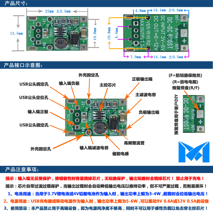2015 USB boost module 5W small power converter input DC3V-5V output DC6V-12V