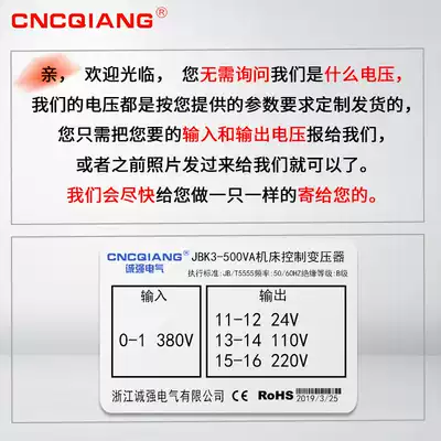 Chengqiang JBK3-500VA machine tool control transformer 220V380 variable 220V110V36V24V6 3v