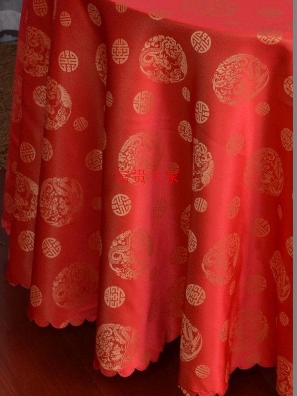 Hot selling hotel dining table dining set chair tablecloth wedding round square tablecloth home European red dragon and phoenix tablecloth