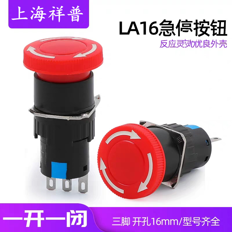 Xiangpu emergency stop button LA16-11ZS round large head small head mushroom emergency power cut normally closed switch 16mm
