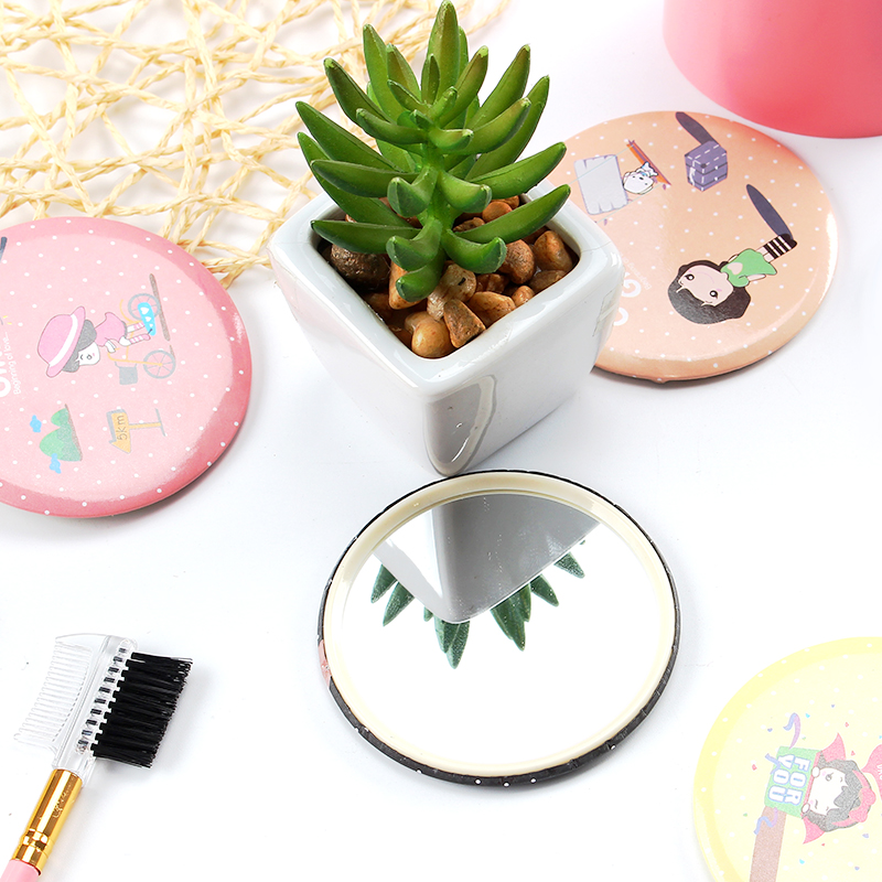 Korean fashion cute mini cartoon small round mirror portable makeup glass mirror creative round carry-on princess mirror