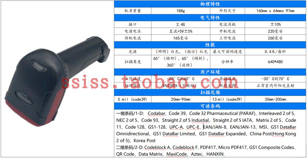 Wireless barcode two-dimensional code gun