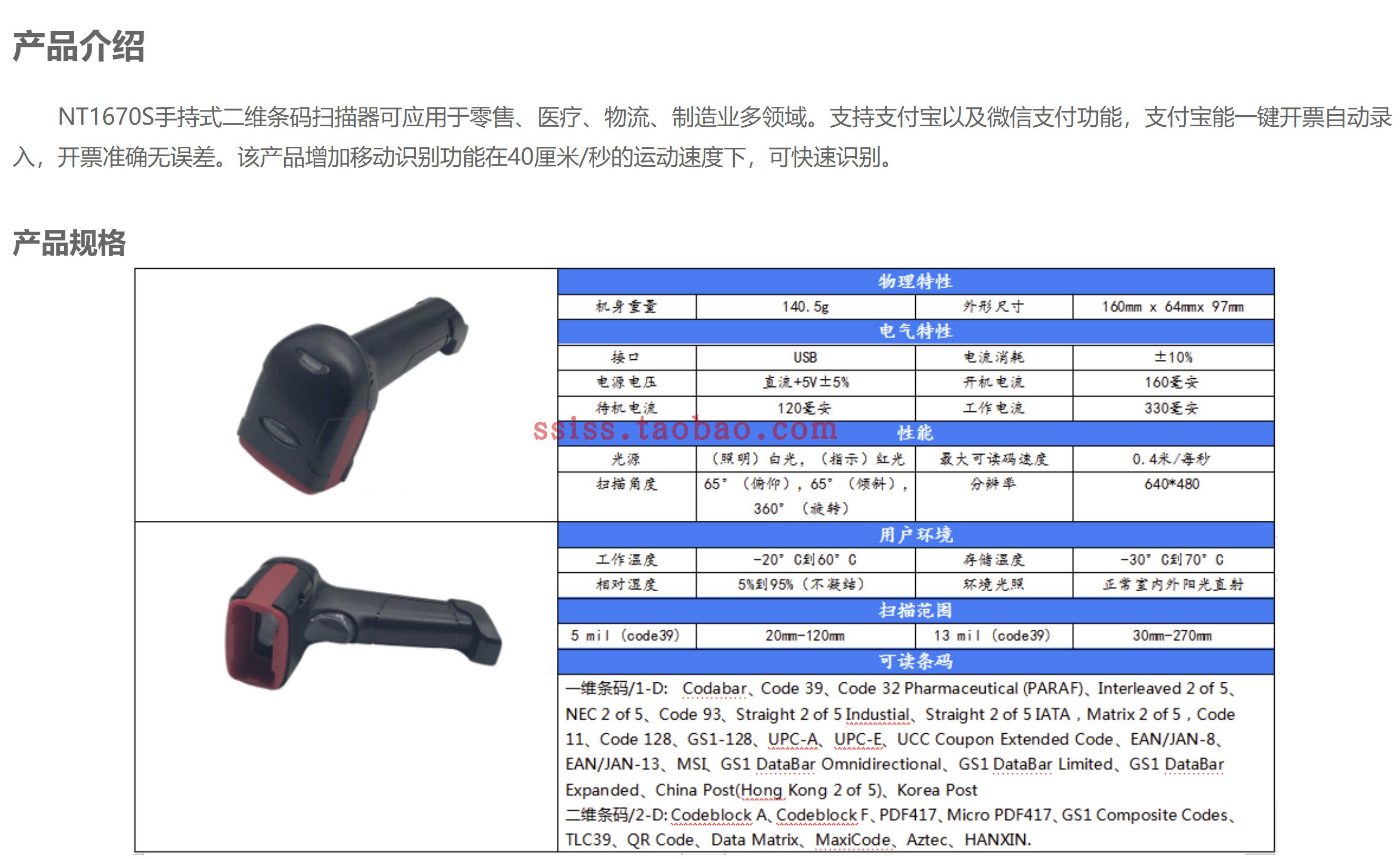 Newtologic Newtetier handheld with laser scanning gun USB wireless Thunder barcode NT-1670s