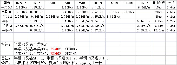 RF coaxial cable RG402 405 semi-steel wire Semi-flexible wire SFT50-1-2-3 SFX047 086 141
