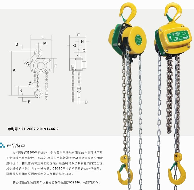 ABLE Hand Crane American Aipel Hand Pull Crane Manually Inverted Chain CB360 Degree Rotation 1T 2T 3 ton