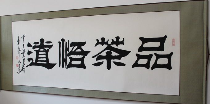 Confucius "Tea - taste" book calligraphy works authentic living room office picture four feet has been framed