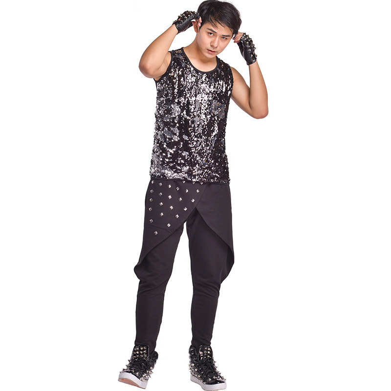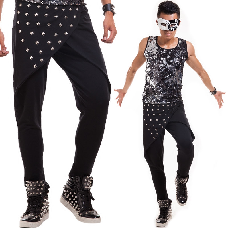 Bar male DJ performing rivets rock concert Harlen pants hair master pants playing pants stage pants