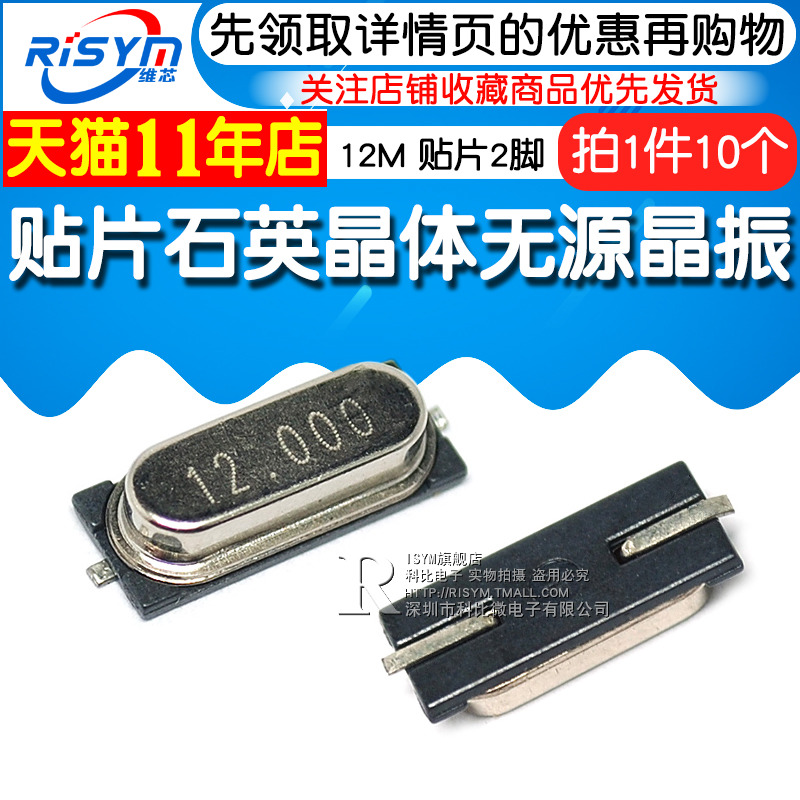 Risym patch crystal oscillator 12M 2 feet 12MHZ 49SMD quartz crystal passive crystal oscillator (10)