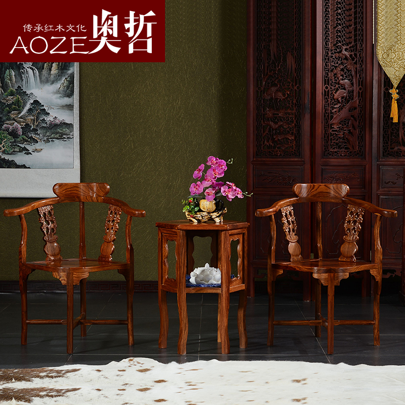 Aozhe classical solid wood lover chair coffee table three-piece set hedgehog rosewood mahogany furniture A-H07
