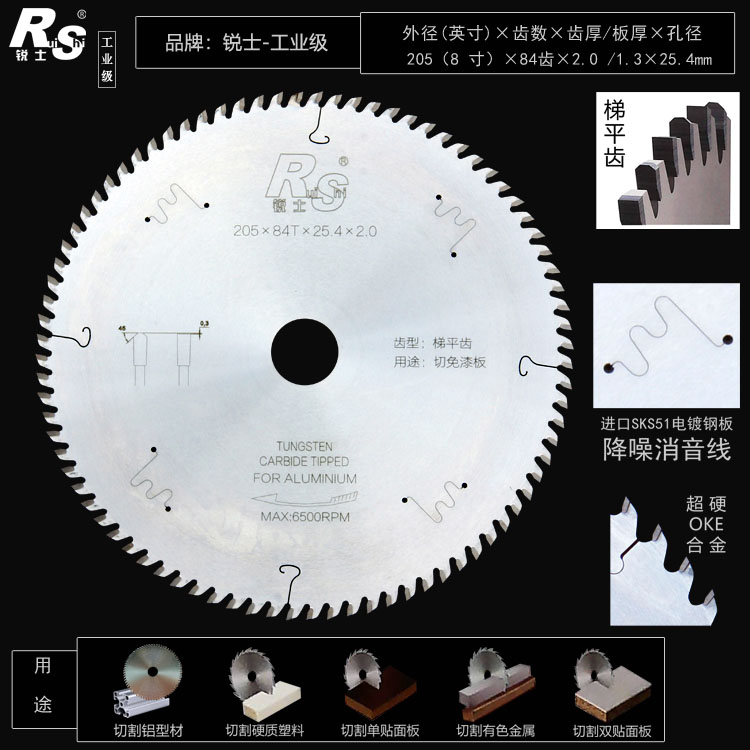 Ruishi crad ladder flat tooth industrial grade woodworking cutting sheet paint-free plate special ultra-thin circular saw blade 7 inch 4 inch 8 inch 9