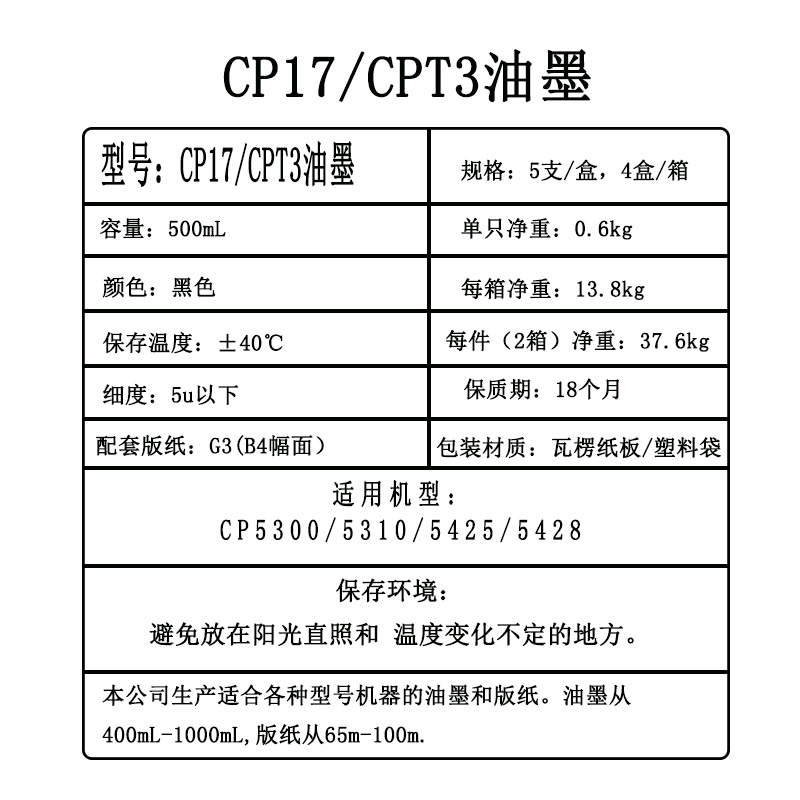 Jiaxin Hongde CP17 ink suitable for CP5428 5300 5438 5425 5310 5435 speed printing machine