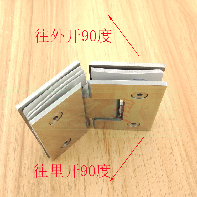135 degrees (closing the door to form 135 degrees) 90 degrees (fixed in the wall sandwich glass door) 180 degrees (closing the door to form a straight line)