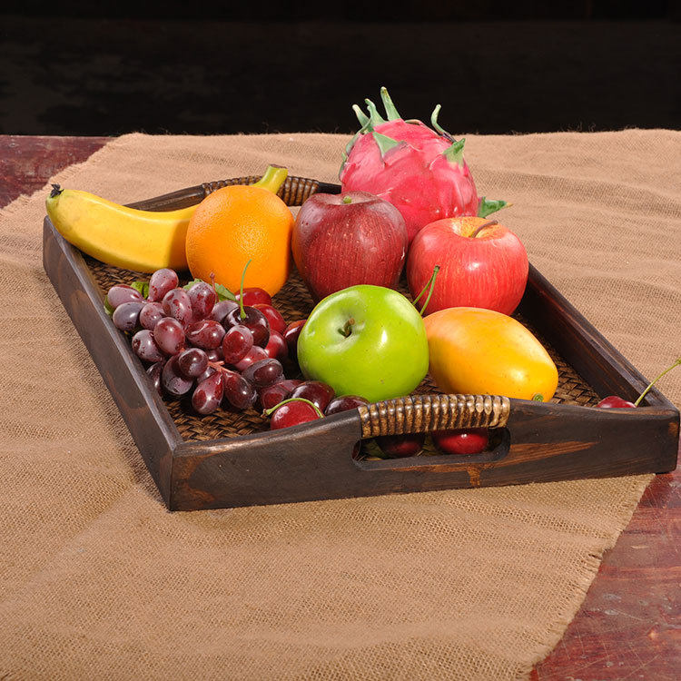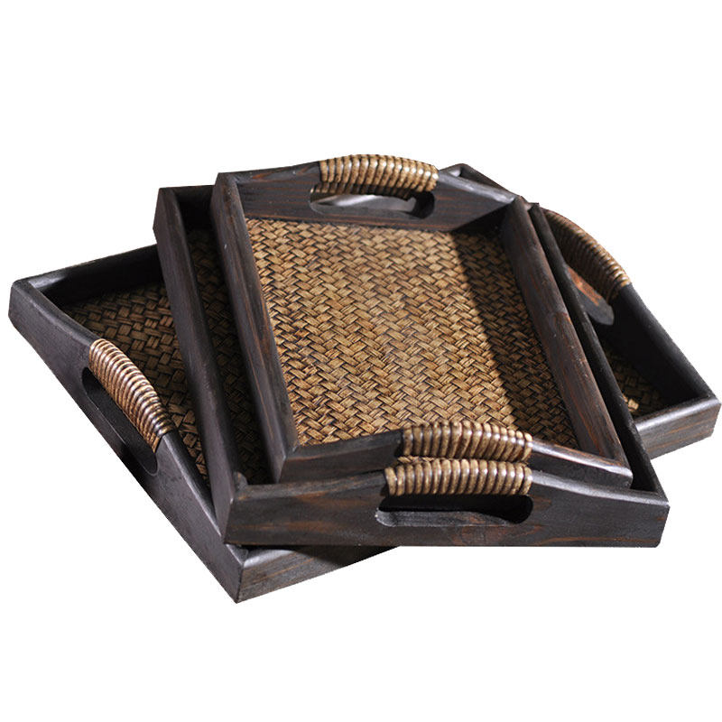 Tai Style Retro Woody Bamboo Rattan Chic Beauty Salon House Hotel Home Fruit Tray Water Cup Tea Tray Creative Tea Room Nursery