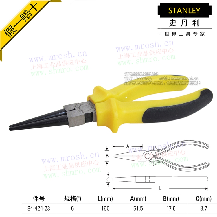 STANLEY HISTORY DANLEY BICOLOR HANDLE ROUND MOUTH PLIERS HEAD PLIERS 6 INCH 84-424-23 STHT84074-8-23