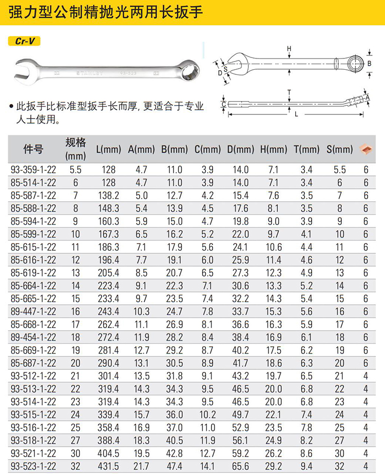Stanley Stanley's Stanley 14 pieces of public fine polished dual-use long wrench 93-614-22
