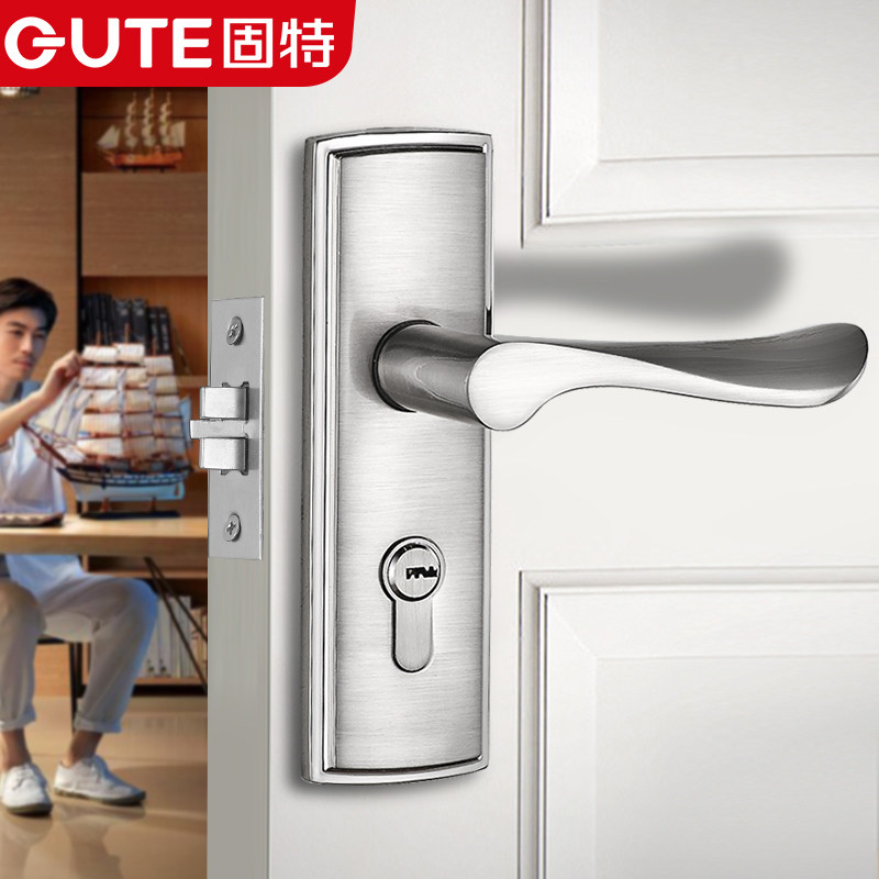 Good door lock Indoor bedroom door lock Powder room single tongue door lock Simple solid wood handle mute lock handle