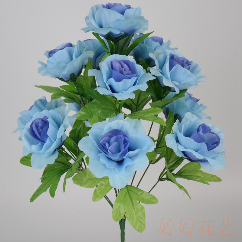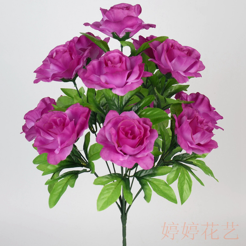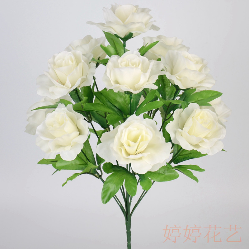 Emulation 12 Head rose hibiscus Rosehip Moon Season Flowers Bouquet Wedding Dining Room Table Decoration Fake Flower Plastic Flower Manufacturer Direct