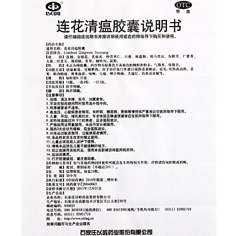 Linglian Huaqinwen Capsules 24 capsules were randomly distributed in the new and old packages of yellow influenza on the tongue coating