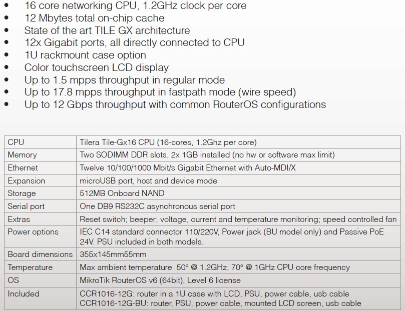 MikroTik Routeros ROS CCR1016-12G Telecom Router 16-Core CPU