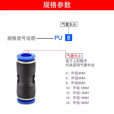 Pneumatic trachea quick connector PU8mm plastic quick plug quick connect butt straight through pu-10 4 6 12 14 16