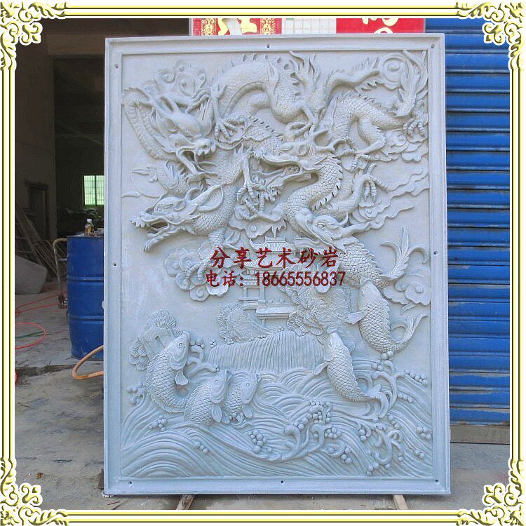 Sandstone relief round sculpture Chinese relief Carp Leaping Dragon door mural painting courtyard living room interior and exterior decoration