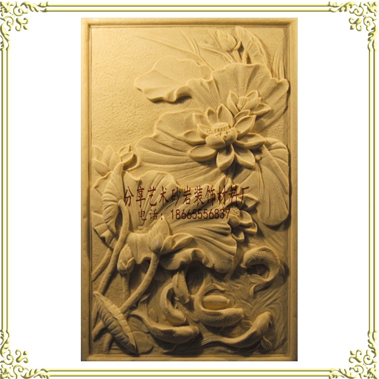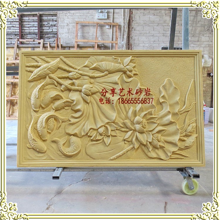 Sandstone round sculpture sculpture sandstone relief carp lotus beauty salon club hall entrance background more than every year