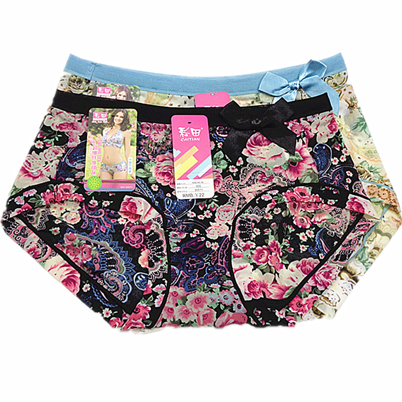 Caitian printed ice silk women's underwear mid-waist 30511 high-waist 30512 ultra-thin quick-drying antibacterial cotton crotch counter through