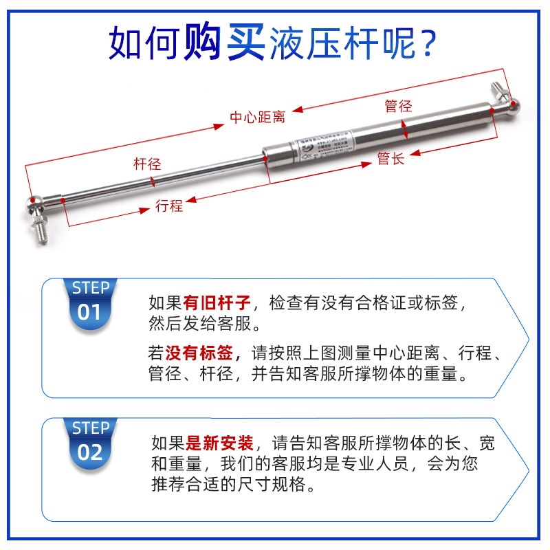 Shuangshan 304 stainless steel gas spring Environmental protection equipment Medical food machinery Yacht Marine hydraulic telescopic telescopic rod