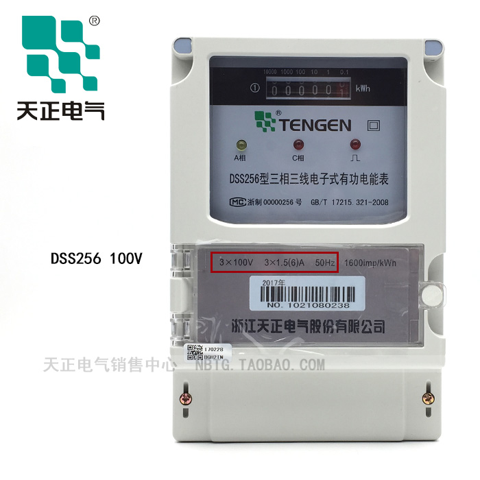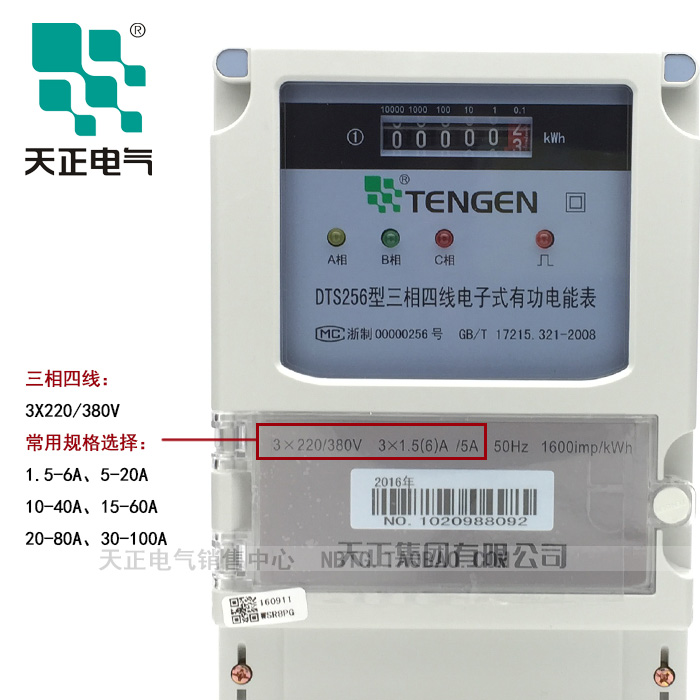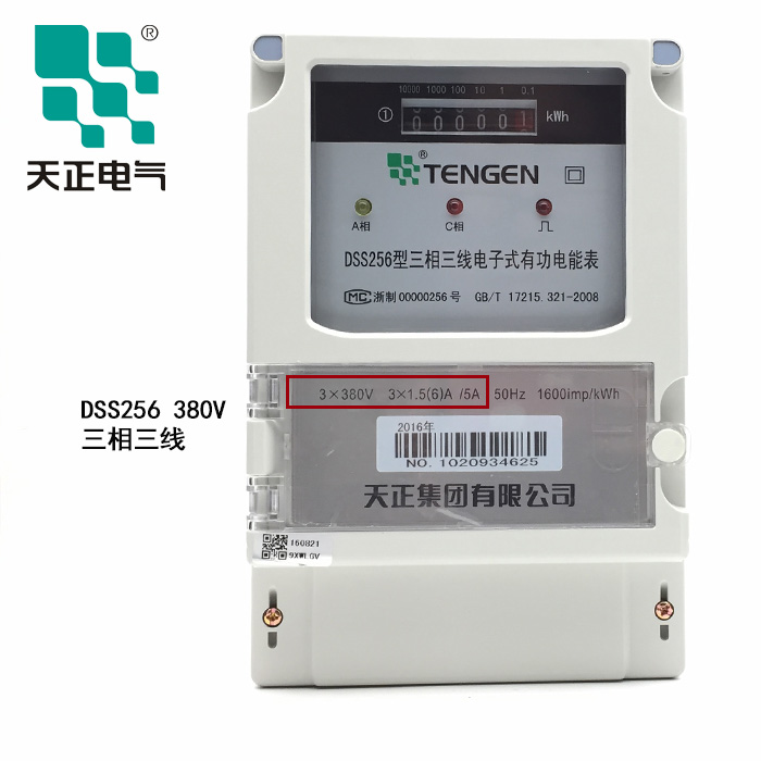 Tianzheng Electric DTS256 380V 1 5-6A three-phase four-wire electronic meritorious electric energy meter 2460100A