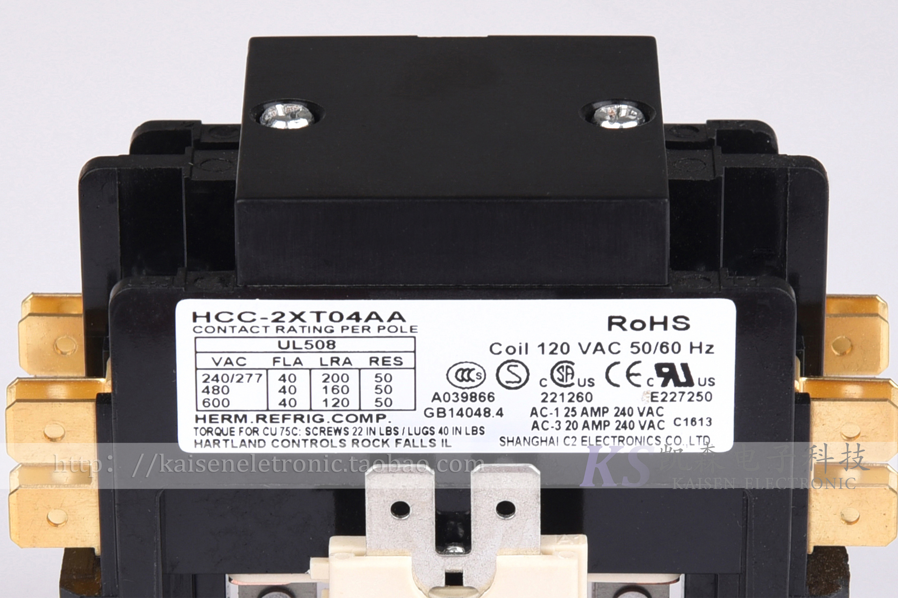 120V 40A HCC-2XT04AA Hartland Controls UL CSA Bipolar AC Contactor