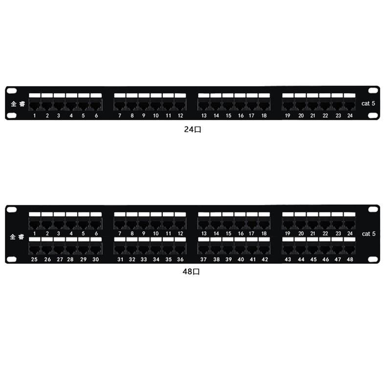 Quanrui Super Category 5 Category 6 Distribution Frame 24-Port 48-Port Network Distribution Frame 1U19 inch RJ45 Engineering Cable Management Frame
