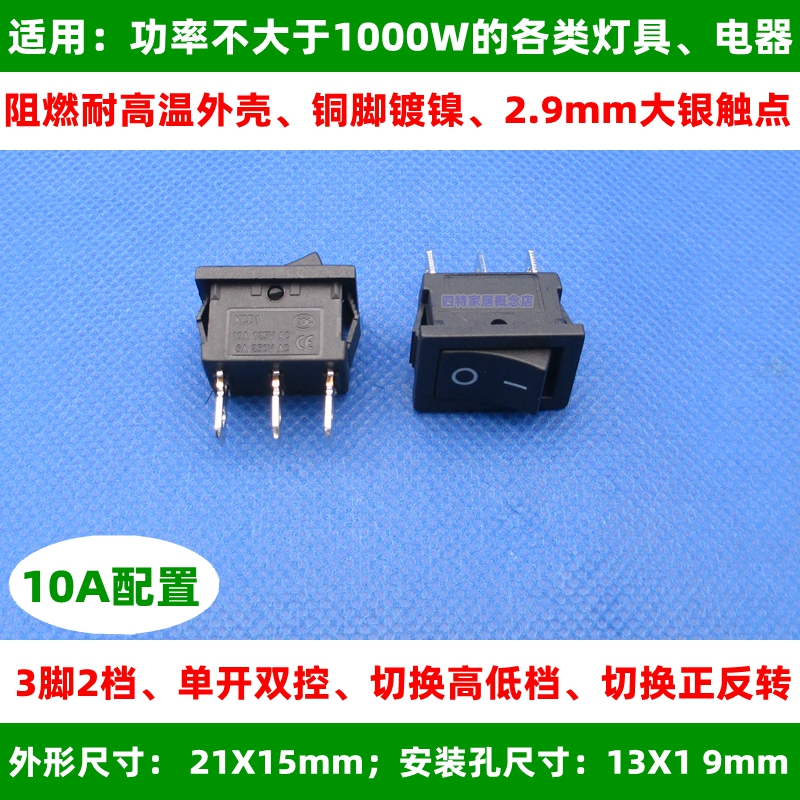 KCD1 teething switch 2 stalls 3-foot single-pole double throw double-cut switching small switch copper feet silver contact contact high temperature resistant 10A