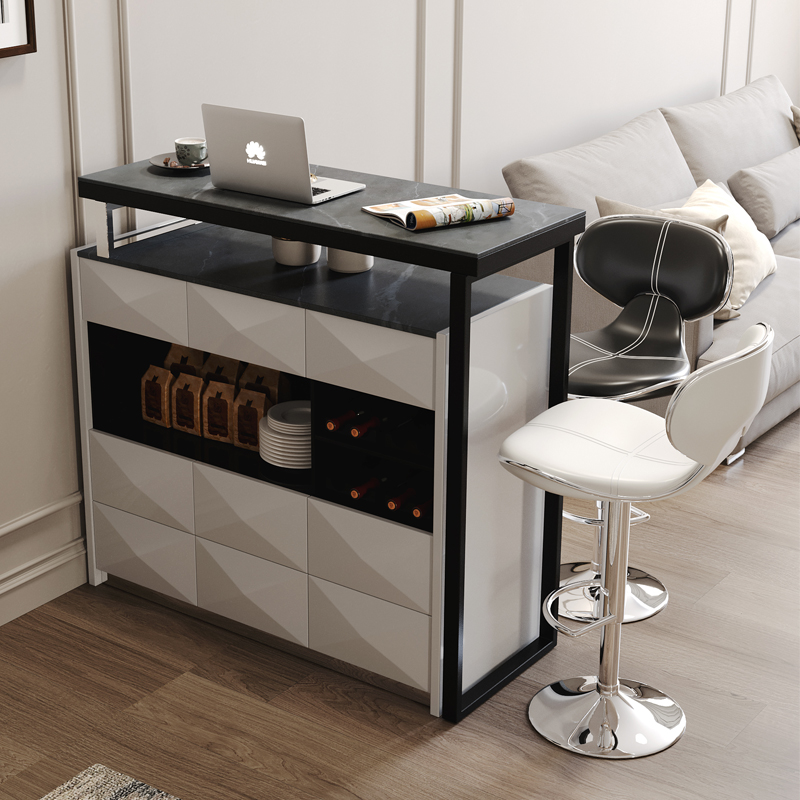 Deep grey rock plate bar 2 pieces of leather bar chair Deep grey rock plate bar Table Single Leather Bar Chair 1100 * 400 * 920mm DINING CABINET (NO BAR RACK) DEEP GREY ROCK BOARD DEEP GREY ROCK BOARD WHITE GRILL