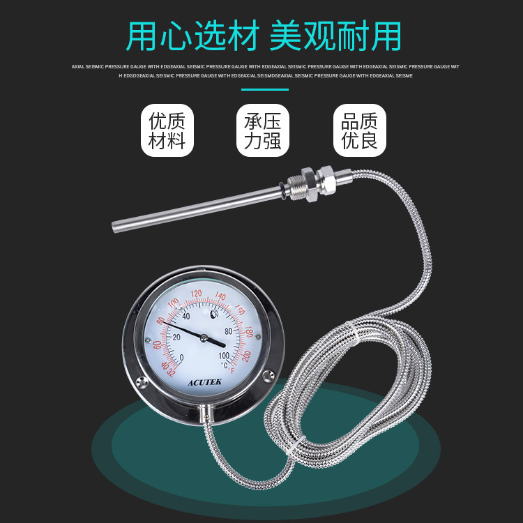 Shock-resistant stainless steel pressure thermometer WTZ-280-N 100 degrees line 3 meters 1 2 probe 10*150