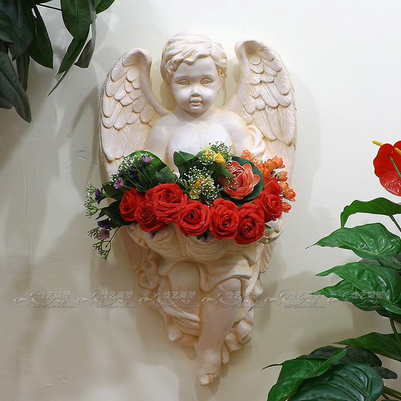 Eurostyle Wall-mounted Small Angel Flower Basket Reliefs Decorated Villa Living Room Garden Patio Outdoor Wall Wall Hanging Accessories-Taobao