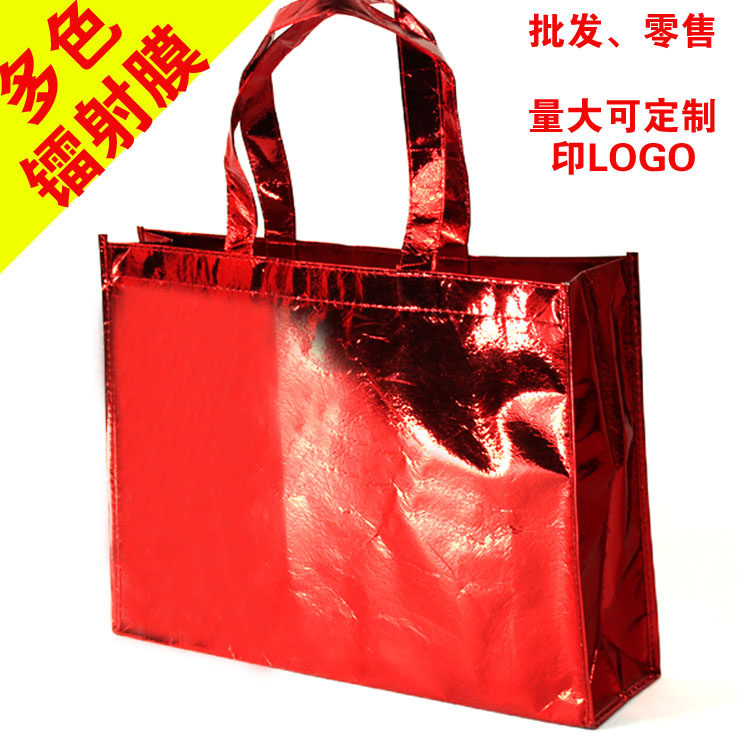Clearance red button bag Gold laser film Holiday gift bag Clothing tote bag Environmental bag customization