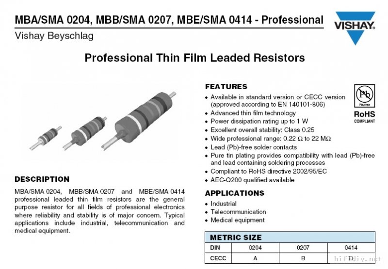 10 4 yuan VISHAY 10R 1% 0207 thick copper foot metal film resistors 0 25W volume 0 5 power