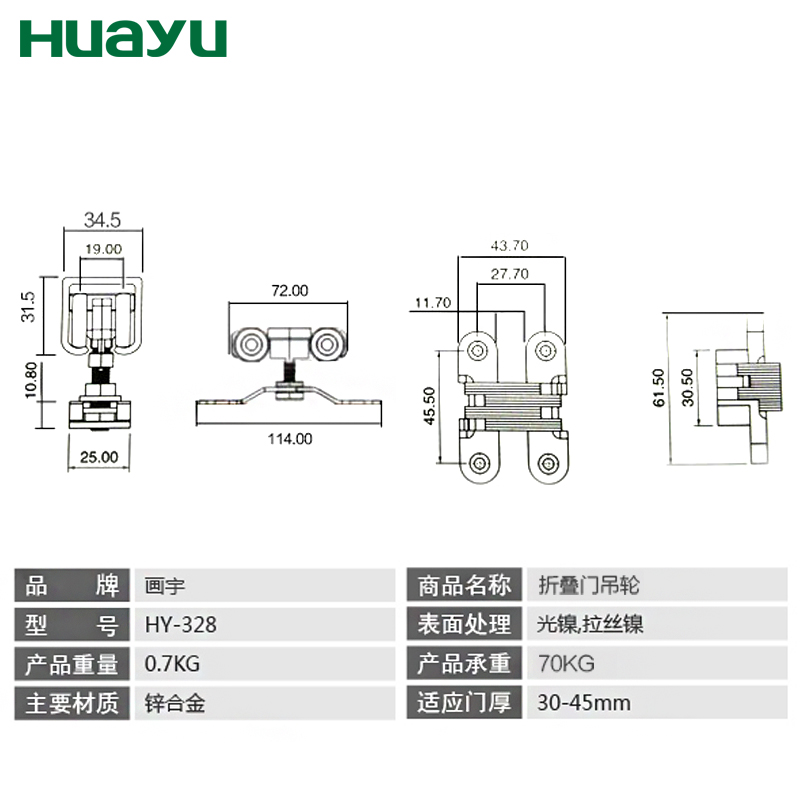 Folding door hanging wheel(1 hanging wheel 2 cross hinge accessories) Matching track 1 meter (can contact customer service to customize the cutting length) Ground rail under the track 1 meter(can contact customer service to customize the cutting length