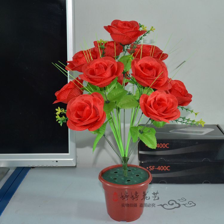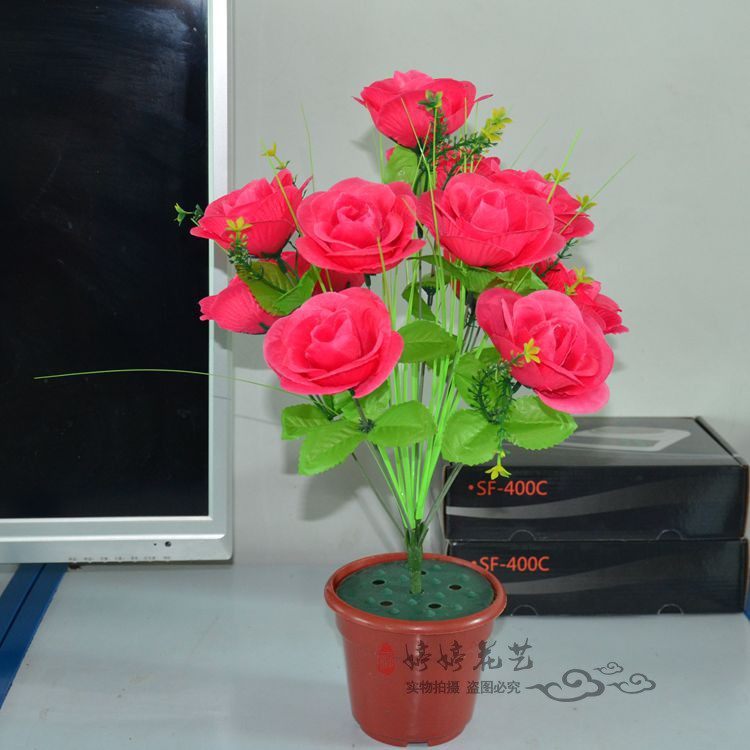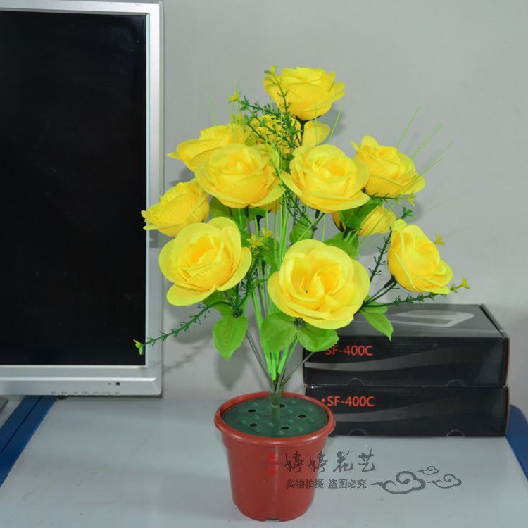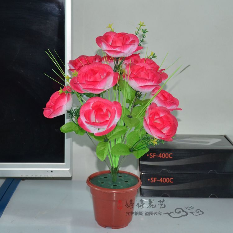 Simulation of 12 rose bouquets wedding opening community green layout decoration silk flower living room fitting plastic fake flowers