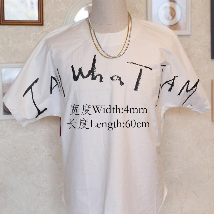 10MM wide 76 cm long Silver 4MM wide 60 cm long Gold 6MM wide 70 cm long Gold 8MM wide 76 cm long Gold 10MM wide 76 cm long