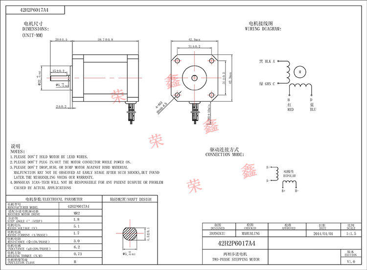 42BYG60 engraving machine stepper motor 42H2P6017A4 current 1.7A torque 0.73N.m CNC motor